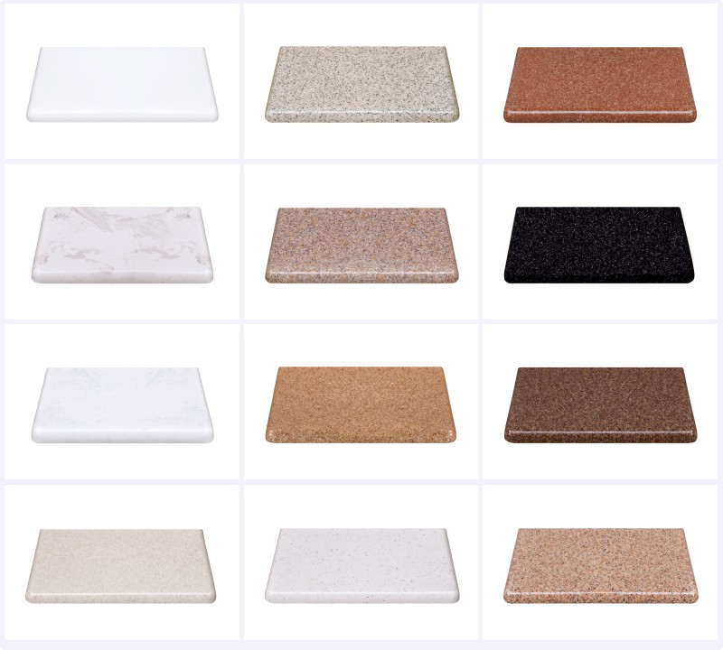 PARAPETY DUROMARMUROWE: Parapety wewnętrzne z duromarmuru (marmuru syntetycznego) są połączeniem naturalnych kruszyw skalnych, żywicy i barwników. Są odporne na warunki atmosferyczne i charakteryzują się odpornością na wilgoć.